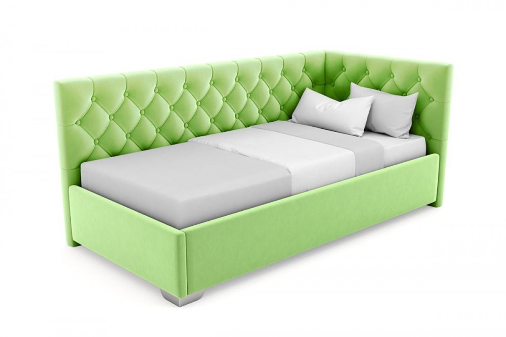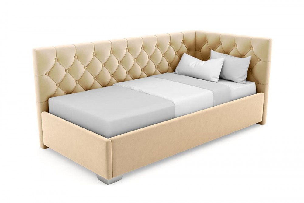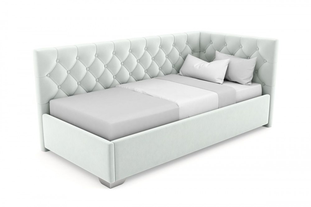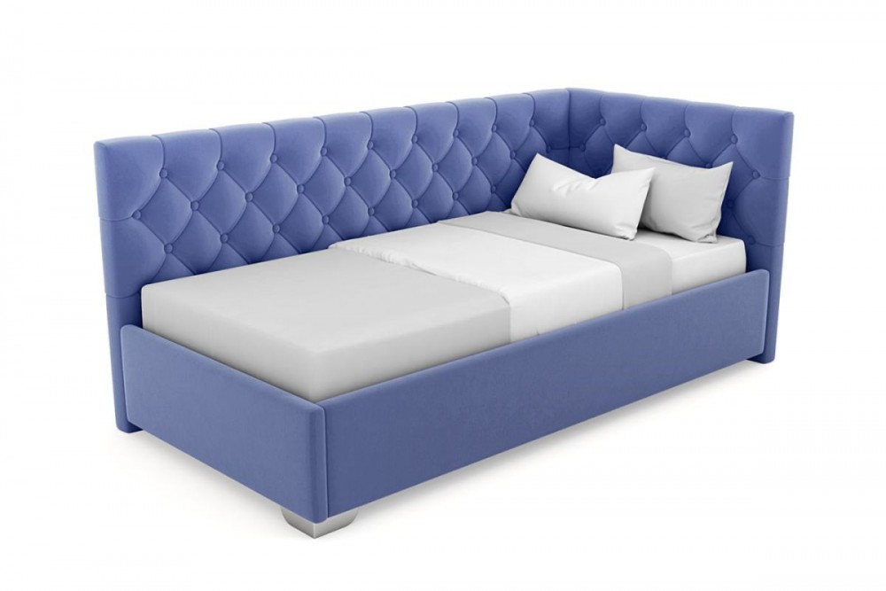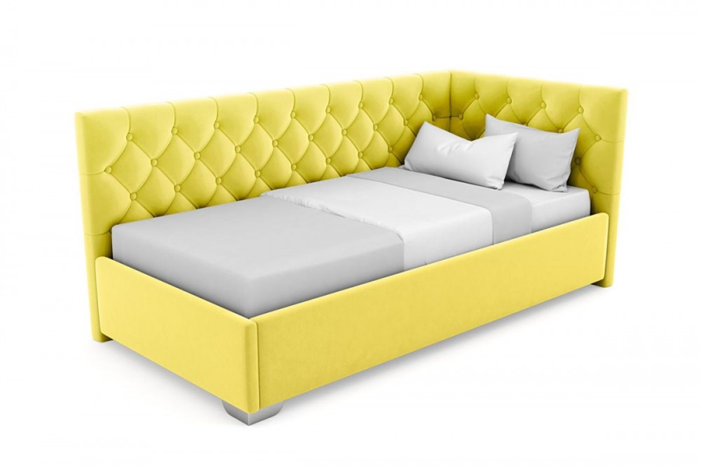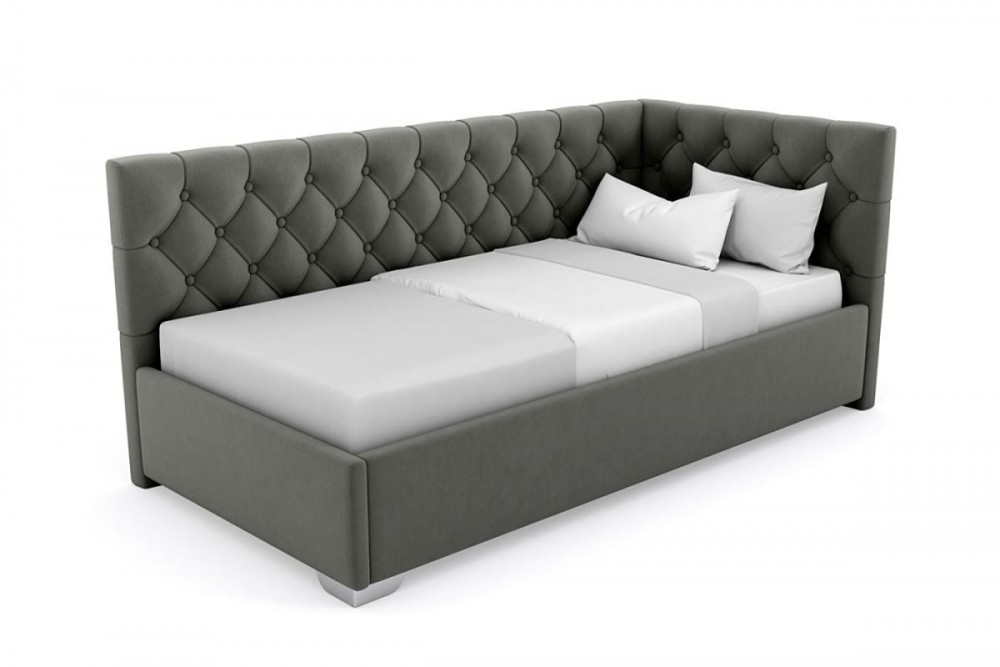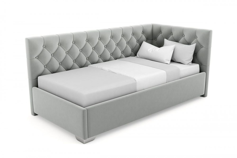 Кровать угловая Виола интерьерная +основание/ПМ/бельевое дно (90х200) 3 кат. ткани