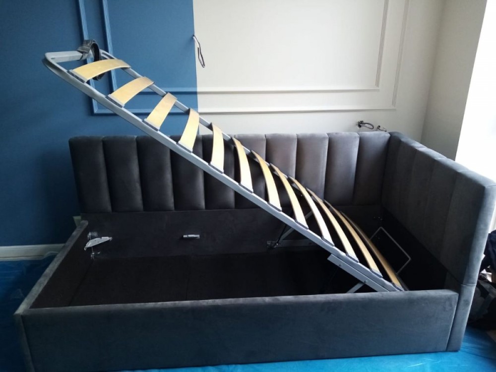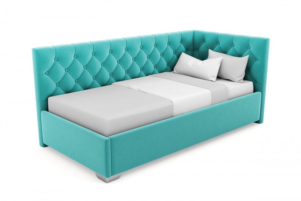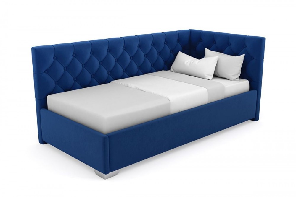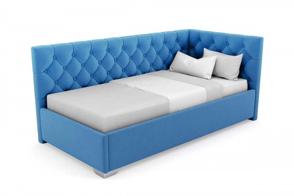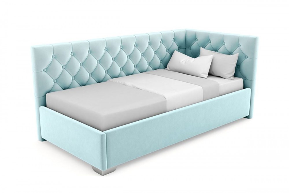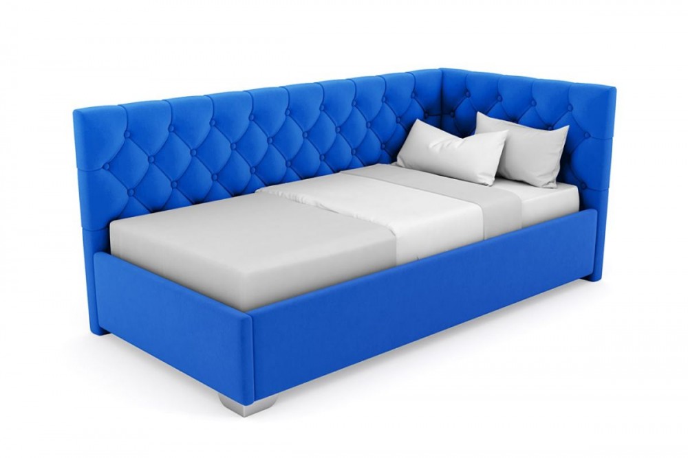 Кровать угловая Виола интерьерная +основание/ПМ/бельевое дно (90х200) 3 кат. ткани