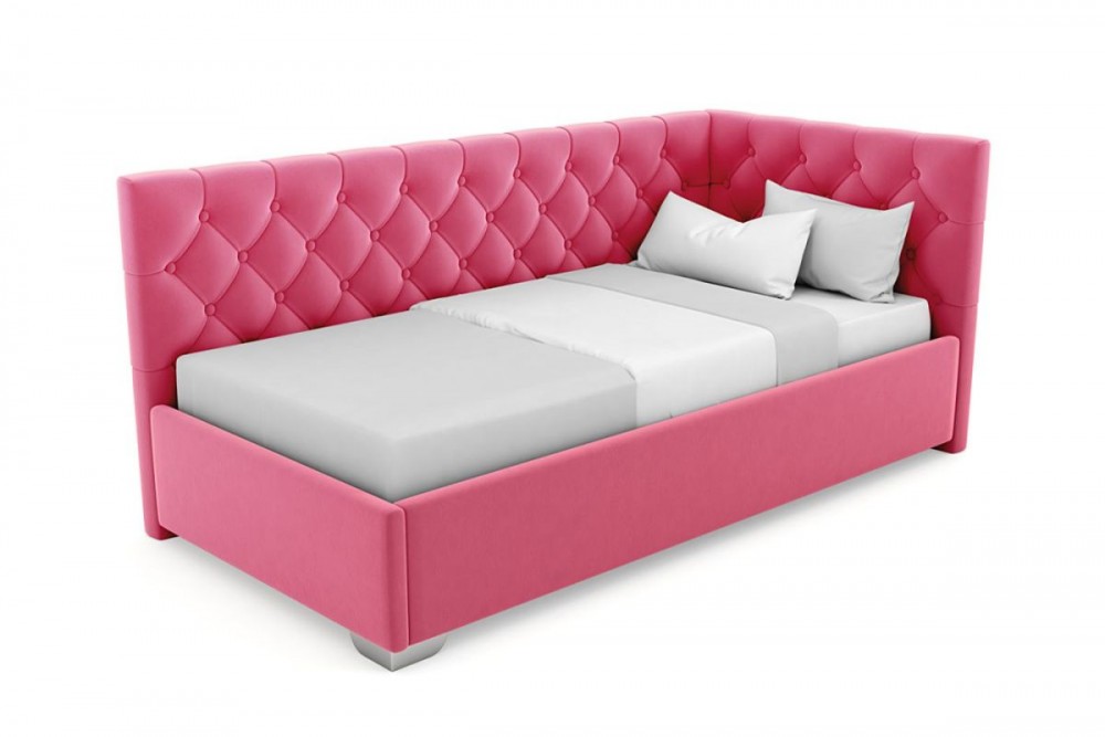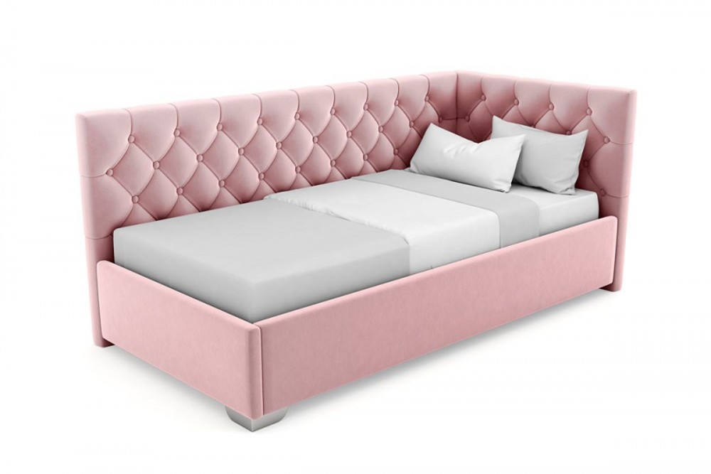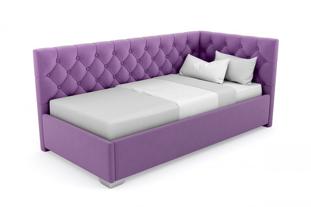 Кровать угловая Виола интерьерная +основание/ПМ/бельевое дно (90х200) 5 кат. ткани