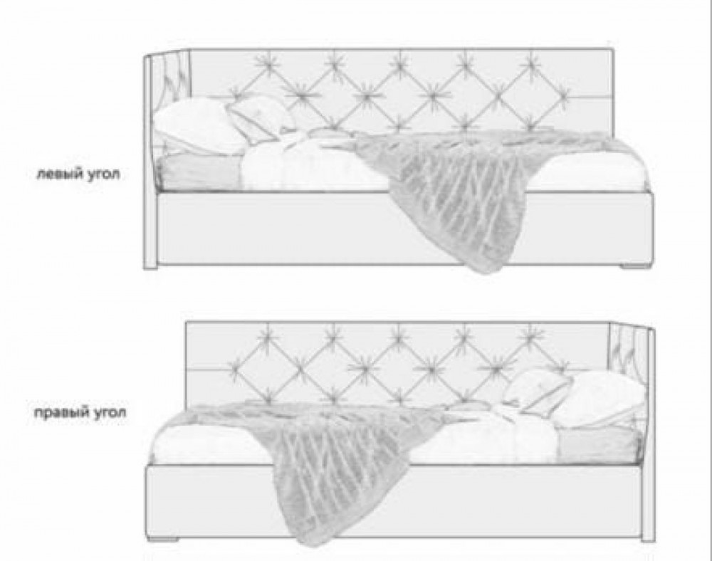 Кровать угловая Виола интерьерная +основание/ПМ/бельевое дно (90х200)